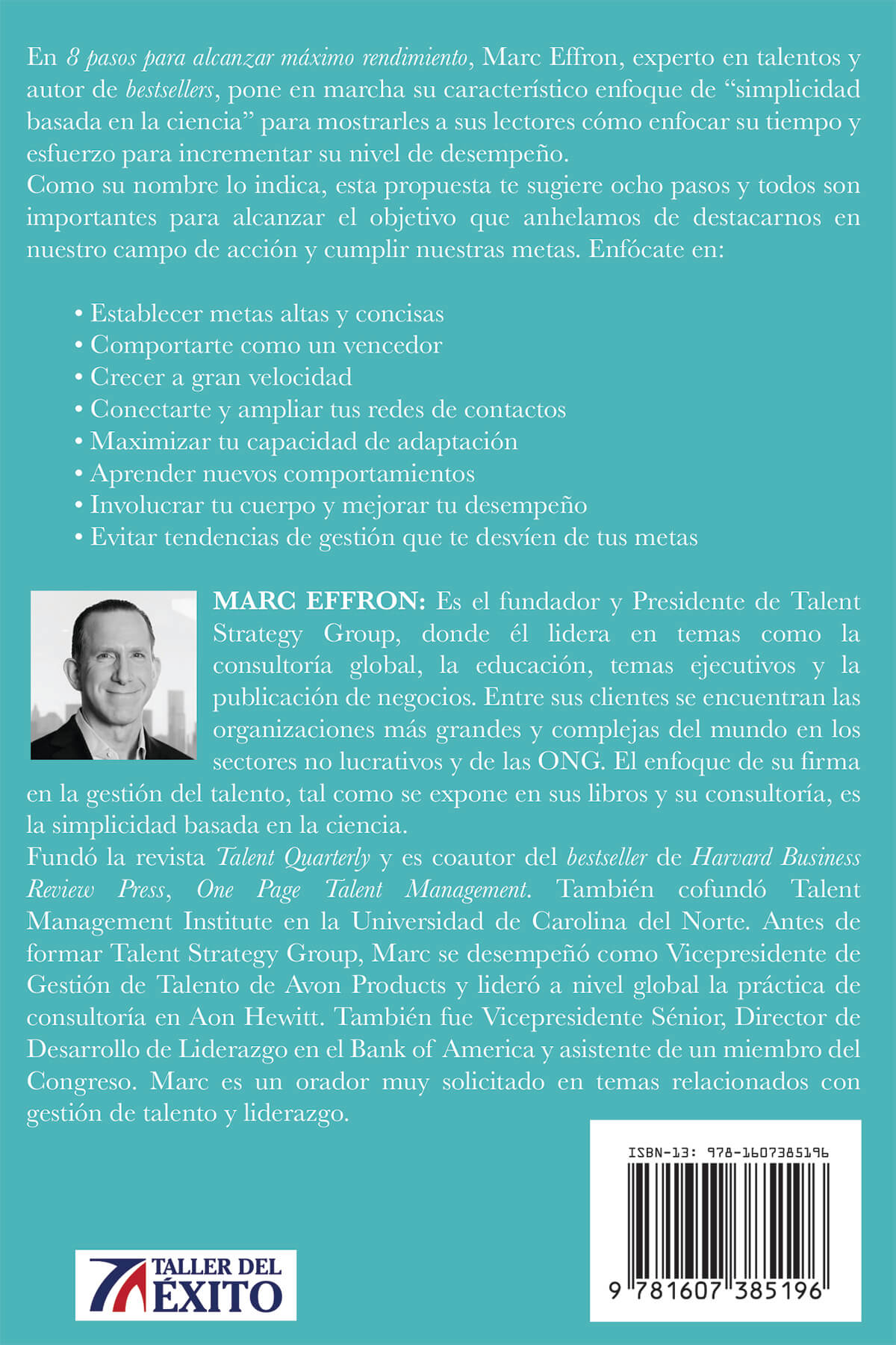 En 8 pasos para alcanzar máximo rendimiento, Marc Effron, experto en talentos y autor de bestsellers, pone en marcha su característico enfoque de “simplicidad basada en la ciencia” para mostrarles a sus lectores cómo enfocar su tiempo y esfuerzo para incrementar su nivel de desempeño.